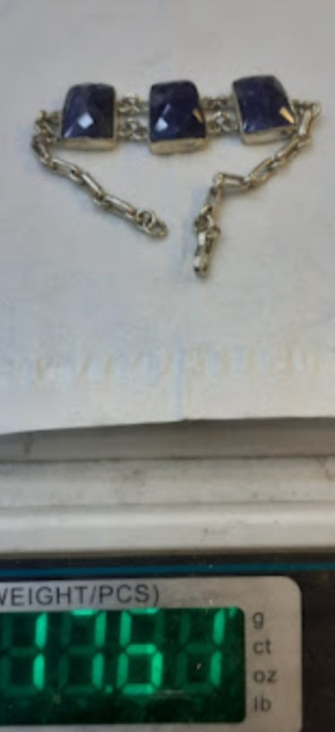 Bracelet from 3 Lapis Lazuli Gemstones, dark blue, Sterling Silver 925 setting.
