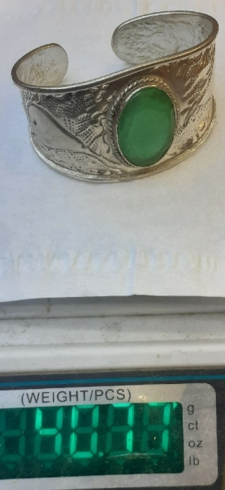 Bracelet Cuff Green Jade, Sterling Silver 925