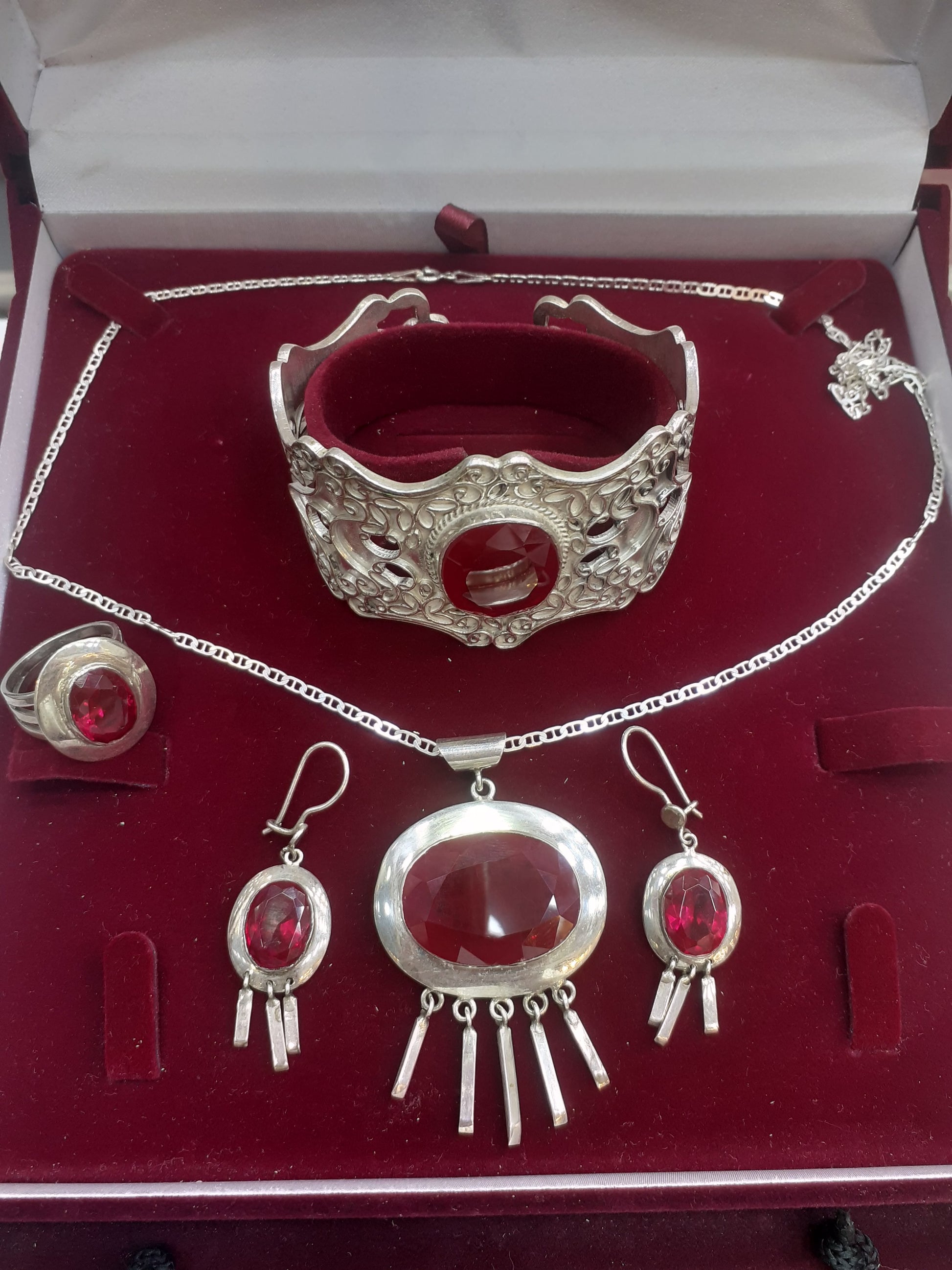 Sterling Silver 925 Cuff Bracelet with big oval Ruby (7 x 5,5 cm), highest quality (pigeonblood).